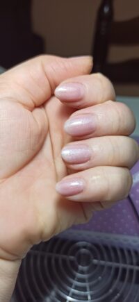 Bellissima base. Effetto delicato ed elegante. Si stende molto facilmente e l’effetto glitter è leggero ma dà un tocco raffinato alla mano.