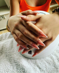 - Preparare l’unghia naturale e opacizzare con lima 180 o con apposite punte per fresa