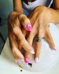 - Preparare l’unghia naturale e opacizzare con lima 180 o con apposite punte per fresa