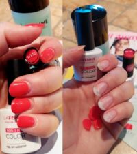 Ero scettica ma dopo ben 2 settimane di colore intatto (sarebbe durato anche 3 tranquillamente) ho rimosso il meraviglioso h172 fragola, in 5 minuti per mano, semplicemente pelando. La foto é stata fatta appena finito la rimozione, in seguito ho lucidato l’unghia e ho cominciato la nuova manicure! Davvero consigliato! Detestavo la rimozione con impacco di solvente e limatura ma ora non sarà più un problema! Qualità di stesura ottima sia della base, sia del colore. Complimenti