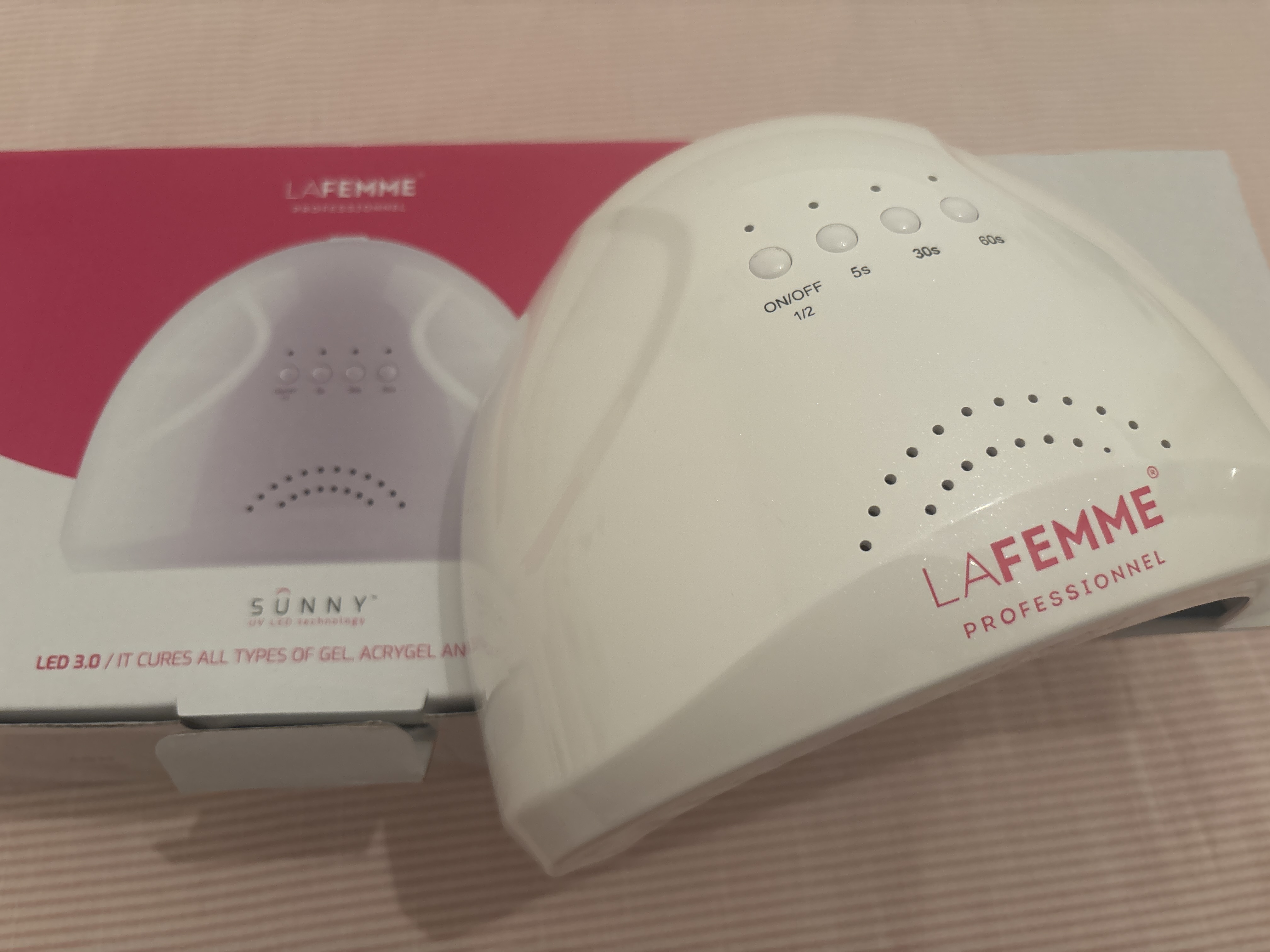 La particolarità della lampada SUNNY™ di La Femme® Professionnel è la luce bianca emanata dai diodi LED&UV di nuova generazione, distribuiti uniformemente e che riducono notevolmente i tempi di polimerizzazione di qualsiasi prodotto La Femme, ottenendo allo stesso tempo risultati impeccabili.