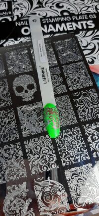 Dopo l’utilizzo rimuovere accuratamente ogni residuo di smalto, smalto semipermanente o stamping gel Moyra® dalla piastra con il solvente senza acetone, e pulire lo stamper con l’apposito strumento.