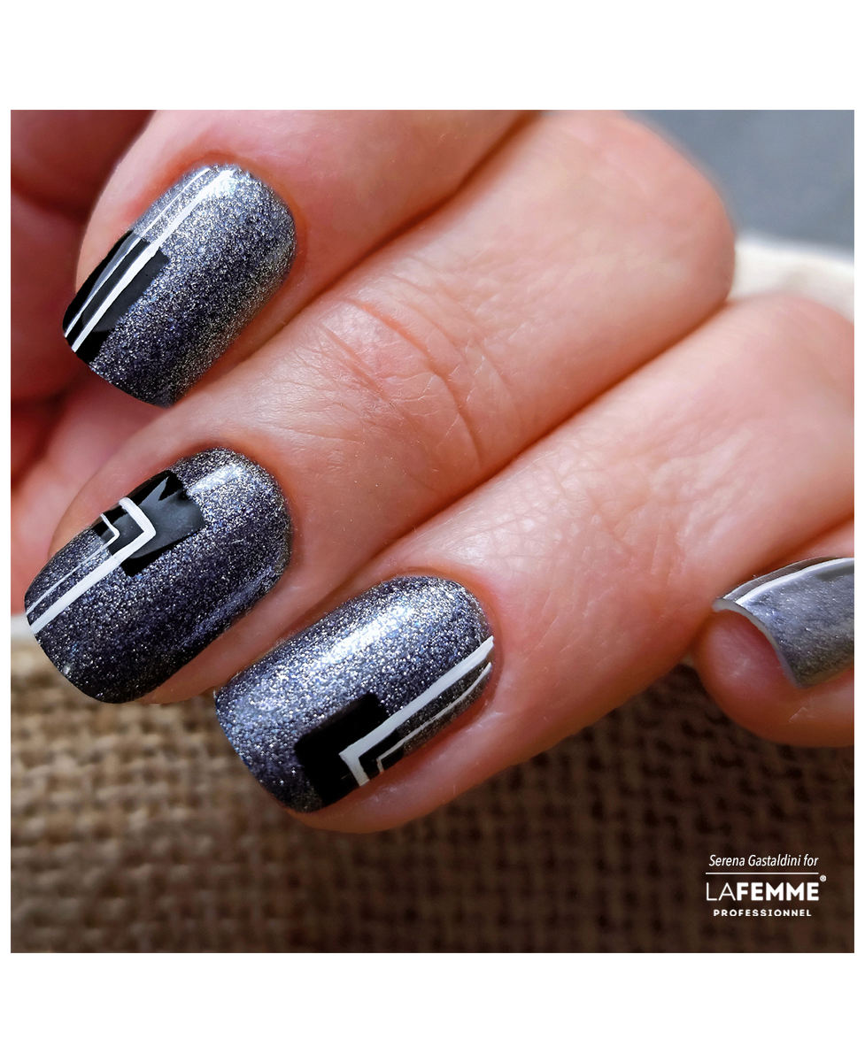 Lo Smalto Semipermanente Argento Glitter (Turbolence) Non Stop Color™ della collezione Aplomb di La Femme® garantisce per oltre 21 giorni un’eccellente durata del colore e una brillantezza senza eguali grazie alla formula Ultra High Gloss.